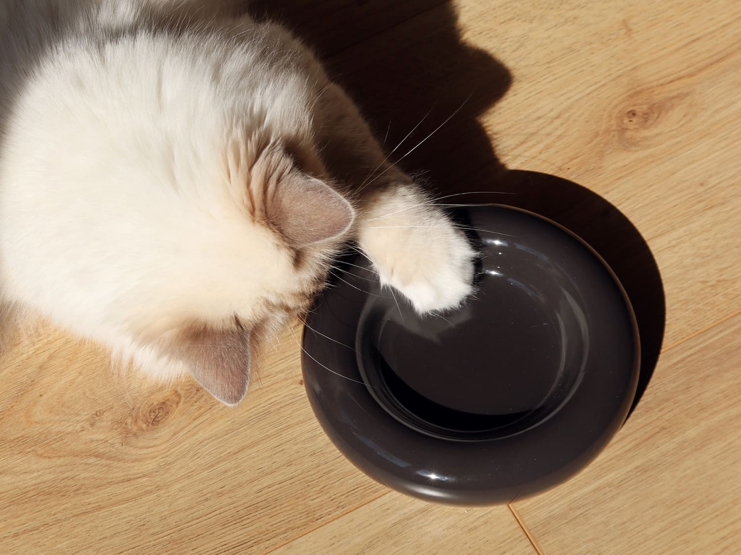 Wie rege ich meine Katze an, zu trinken? Hier kommt es wieder sehr gelegen, dass unsere Katzen so umtriebig sind. Denn es zeigt sich: je mehr verschiedene Wasserstellen wir unseren Stubentigern anbieten, desto mehr werden sie auch trinken. Hurra! Deshalb sollte man an mehreren Orten in der Wohnung Trinknäpfe platzieren. Wir haben unter anderem aus diesem Grund einen freistehenden Futter- und Wassernapf entwickelt, der genau diese Problematik anspricht. Der stylische DELI Wassernapf erfüllt dabei gleich zwei Zwecke – er lässt sich problemlos überall positionieren und ist dabei ein Designobjekt für sich. Für Katzen und Menschen also eine Win-Win Situation!