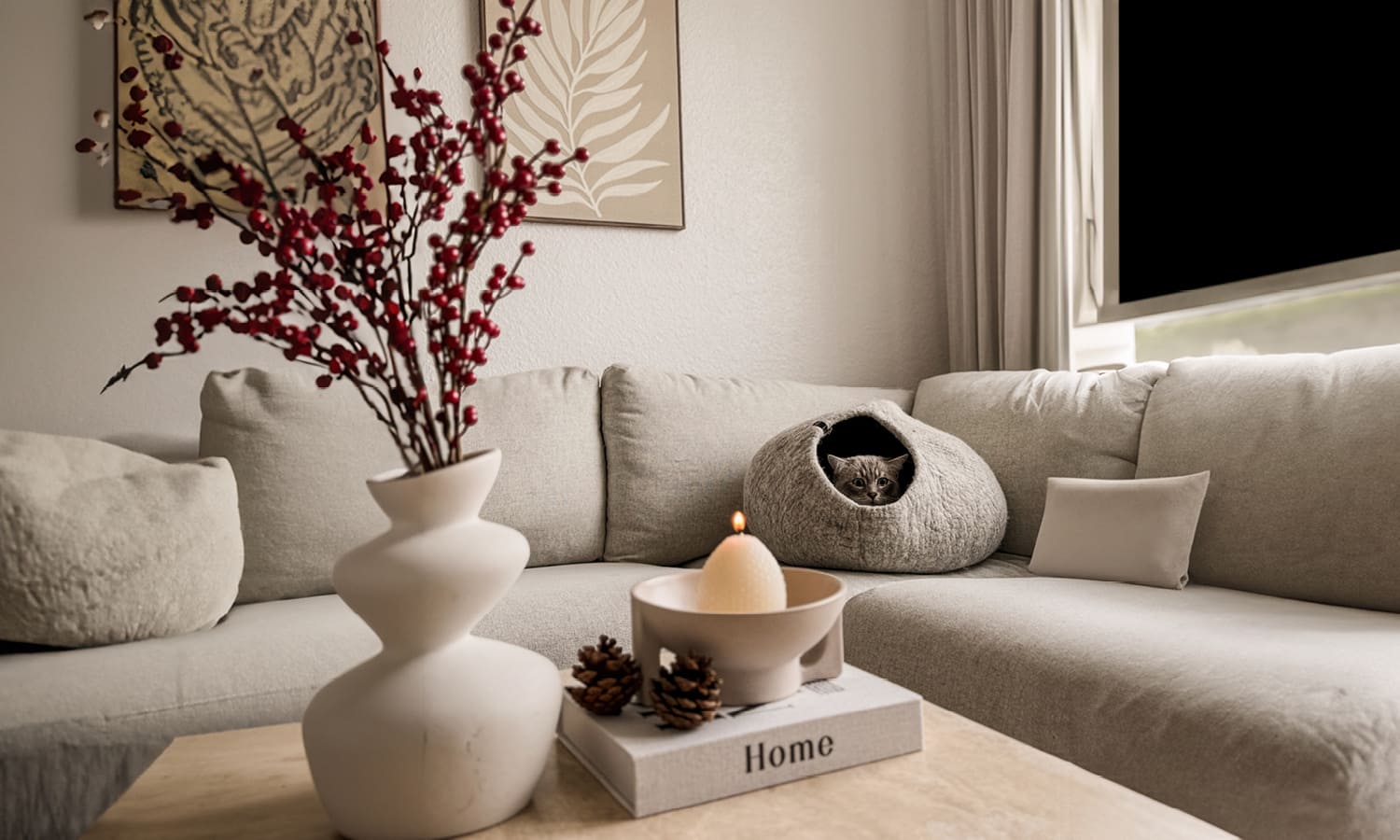 🛋️ Gemütliche Kuschelzeit: Der Herbst lädt zu kuscheligen Stunden auf dem Sofa ein. Schaffe einen warmen, weichen Platz mit Decken oder einem Katzenbett. Ein erholsames Nickerchen im Herbstsonnenschein ist unbezahlbar.
