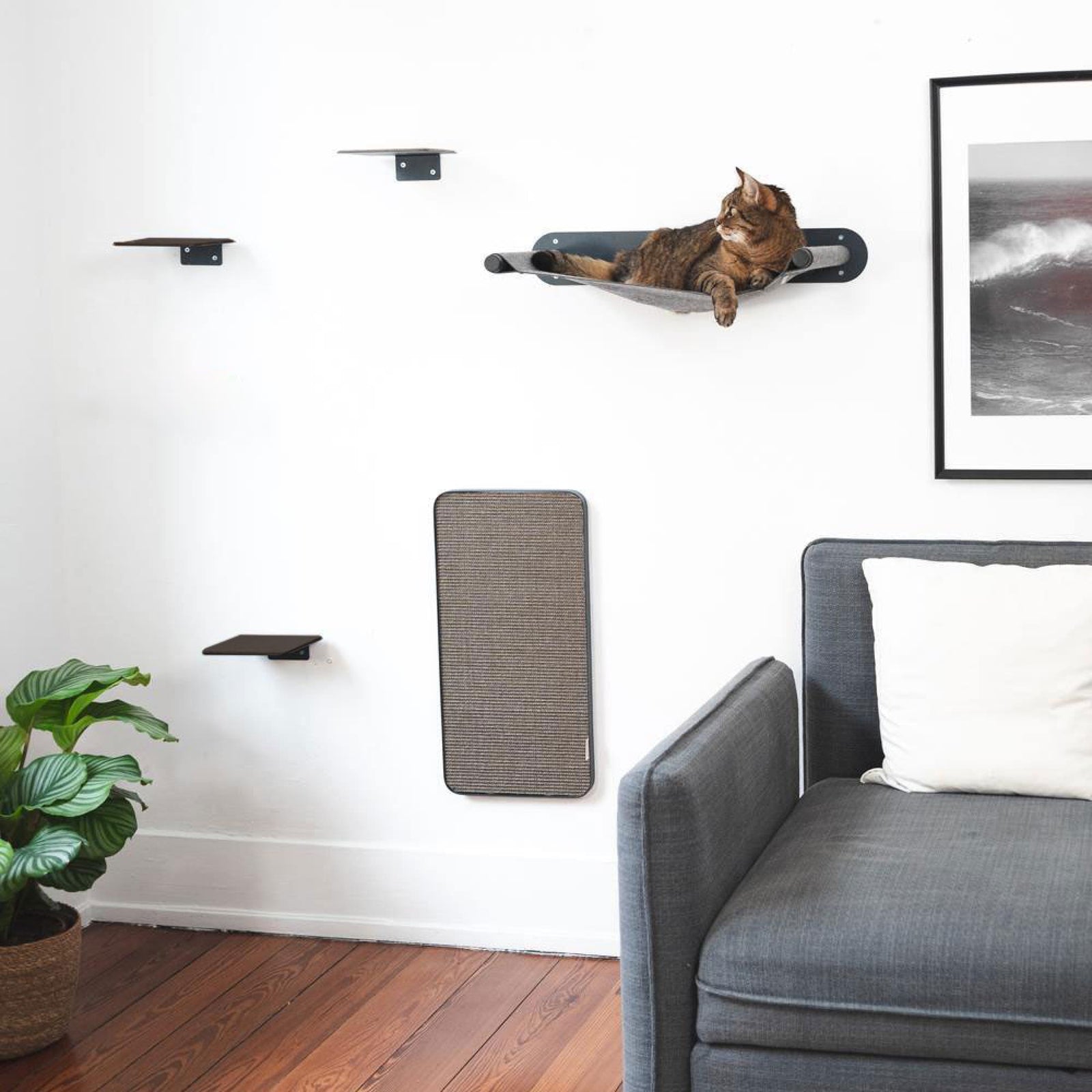 Die STEPS Katzentreppe vereint alles, was moderne Katzenmöbel heute bieten sollten: sicheren Halt, langlebige Materialien, flexible Gestaltungsmöglichkeiten und ein minimalistisches Design. Sie eignet sich als Katzentreppe indoor, kann aber – je nach baulichen Gegebenheiten – auch als Outdoortreppe für Balkon, Loggia oder Hauswand dienen. STEPS ist dabei die filigranere, hochwertigere Alternative zu üblichen Katzenleitern aus Holz oder einfachen Stecksystemen. Als Wand-Catwalk ermöglicht sie Katzen, ihren natürlichen Bewegungsdrang auszuleben und erhöht gleichzeitig ihren Lebensraum – ohne zusätzliche Bodenfläche zu benötigen. In Kombination mit weiteren LucyBalu-Produkten wie der Hängematte SWING, dem Wandbrett STRAIGHT oder der Aufstiegshilfe WAVE entsteht ein komplettes Katzenwand-System für ein dreidimensionales Zuhause. So wird aus einer simplen Katzentreppe eine durchdachte Kletterlandschaft, die für Abwechslung, Sicherheit und Wohlbefinden sorgt. Wer also eine langlebige und ästhetische Alternative zu üblichen Katzenleitern oder DIY-Katzentreppen sucht, findet in STEPS die perfekte Lösung für jedes Zuhause – funktional, stabil und außergewöhnlich elegant.