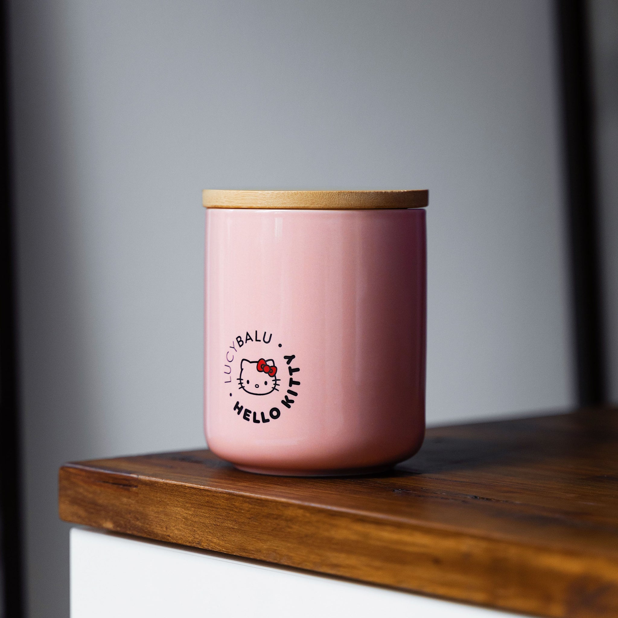 Perfektes Leckerli Versteck! Hochwertige Porzellandose mit luftdichtem Bambusdeckel und süßem Hello Kitty Print.