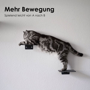 Auf die Stufen, fertig, los! Die STEPS Katzentreppe für die Wand ist so filigran wie keine andere – und gleichzeitig ein stabiler Katzen-Abenteuerspielplatz.