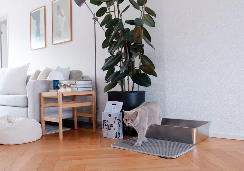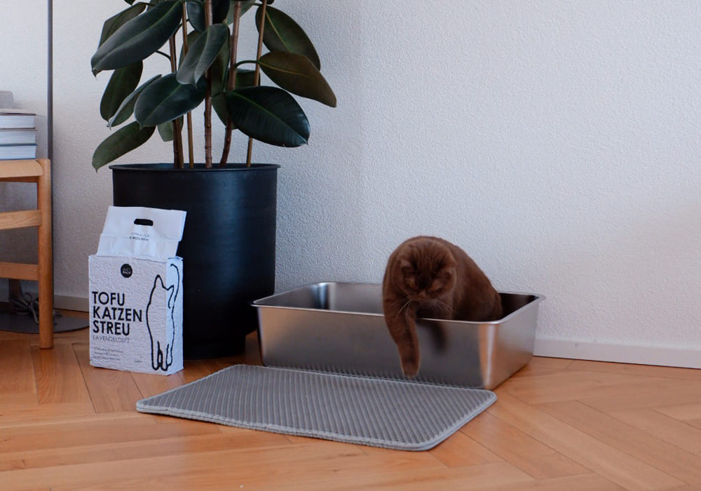 Es liegt endlich nicht mehr so viel Katzenstreu rum. Fängt alles schön auf.