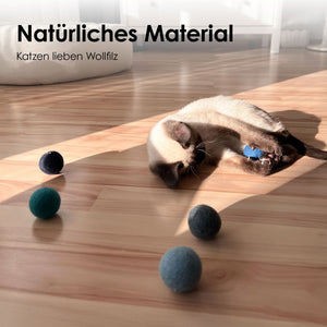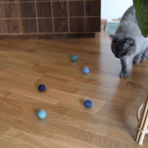Katzen lieben es, hinter Bällchen herzujagen, sie mit ihren Pfoten zu schnappen und durch die Luft zu schleudern. Die OCEAN VIBES Bälle sind federleicht, aus 100 % natürlichem Wollfilz und fühlen sich angenehm weich an. Dank ihres Materials rollen sie nicht zu schnell, sondern bewegen sich genau so, dass sie den natürlichen Jagdinstinkt deiner Katze anregen.