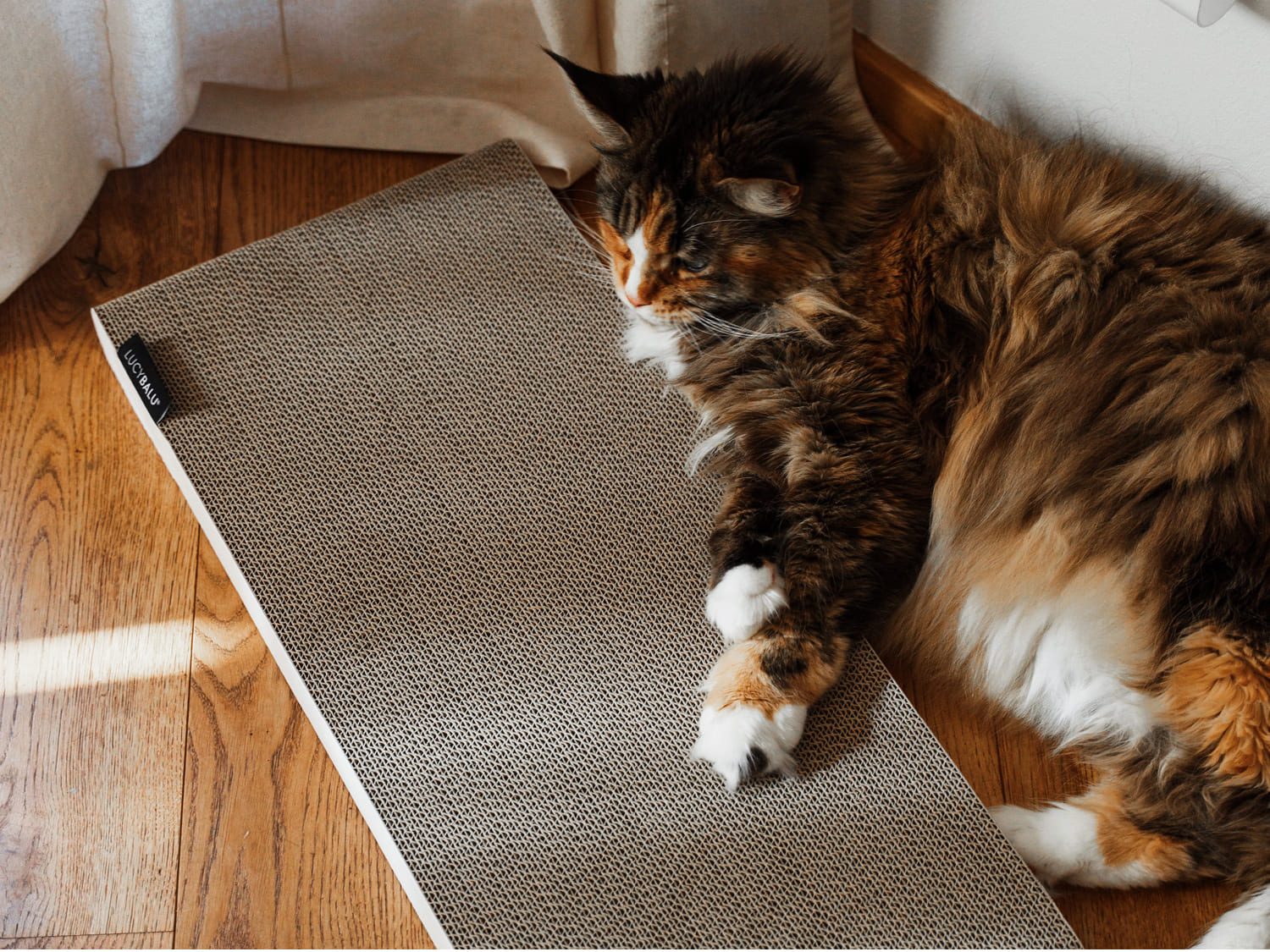 Unser Kratzbrett für Katzen kann auch einfach auf den Boden gelegt werden, anstatt an die Wand montiert zu werden. So können ältere Vierbeiner ganz entspannt auf dem Boden ihre Krallen schärfen.