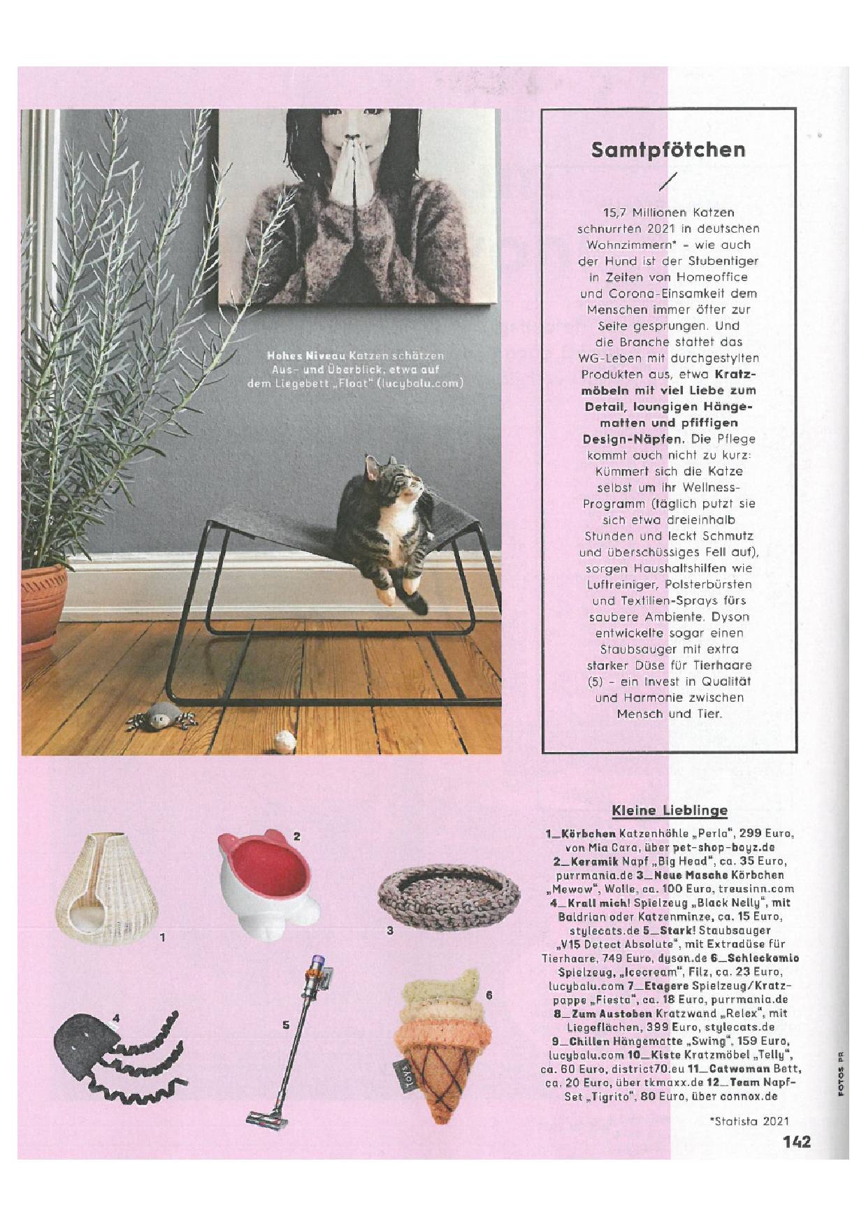 Wir freuen uns, dass wir im Mai 2022 im Heft Nr. 11 in der "Brigitte" zu sehen waren. Auf Seite 142 werden LucyBalus Liege Float  und das Filzspielzeug Icecream  vorgestellt.