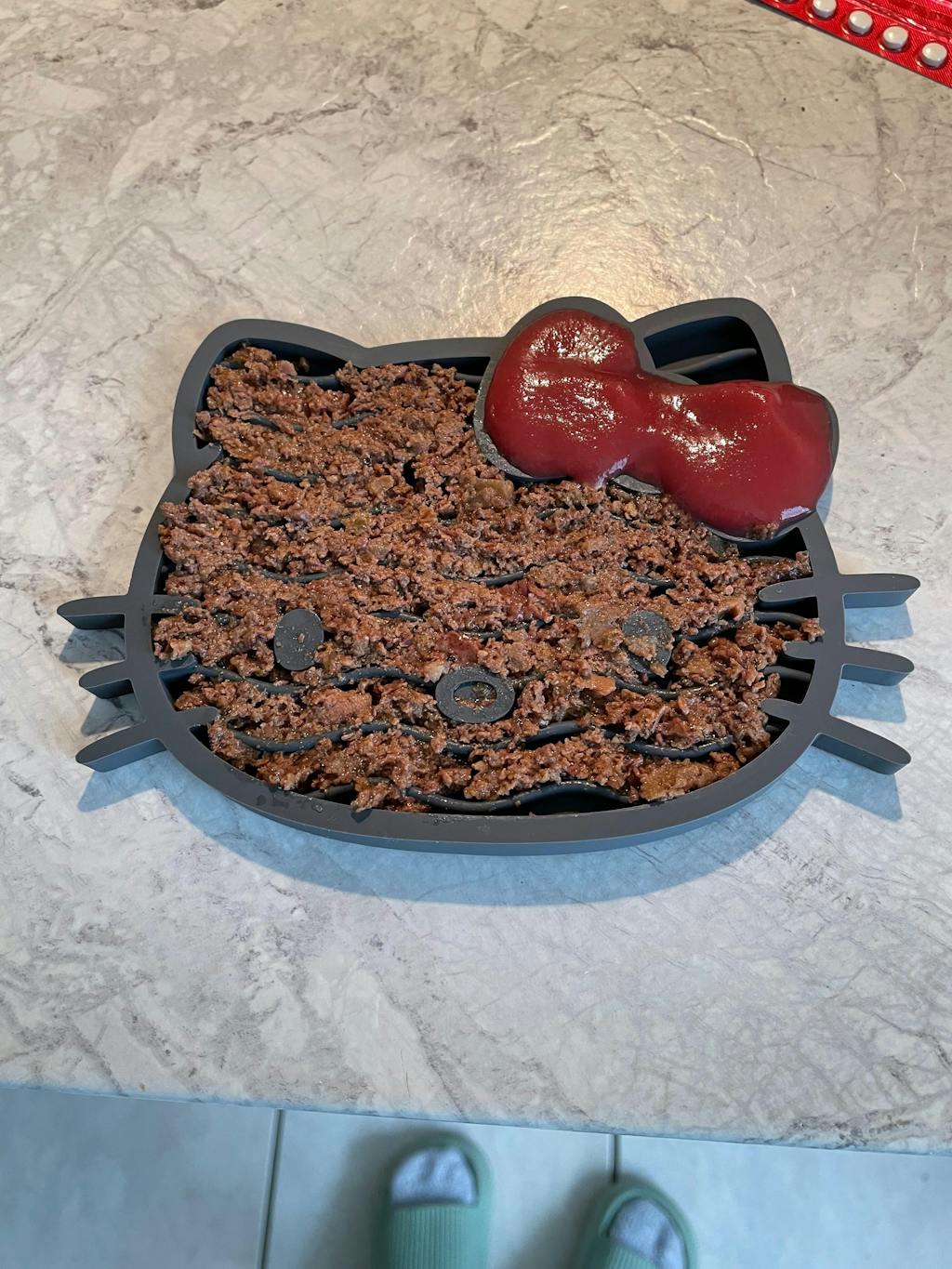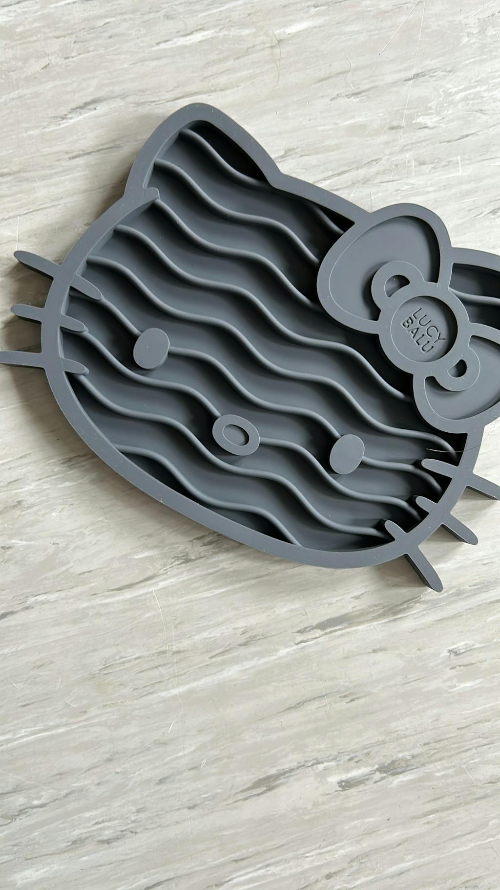 • Statement piece. The lick mat in Hello Kitty design is not just nice to look at for your cat.