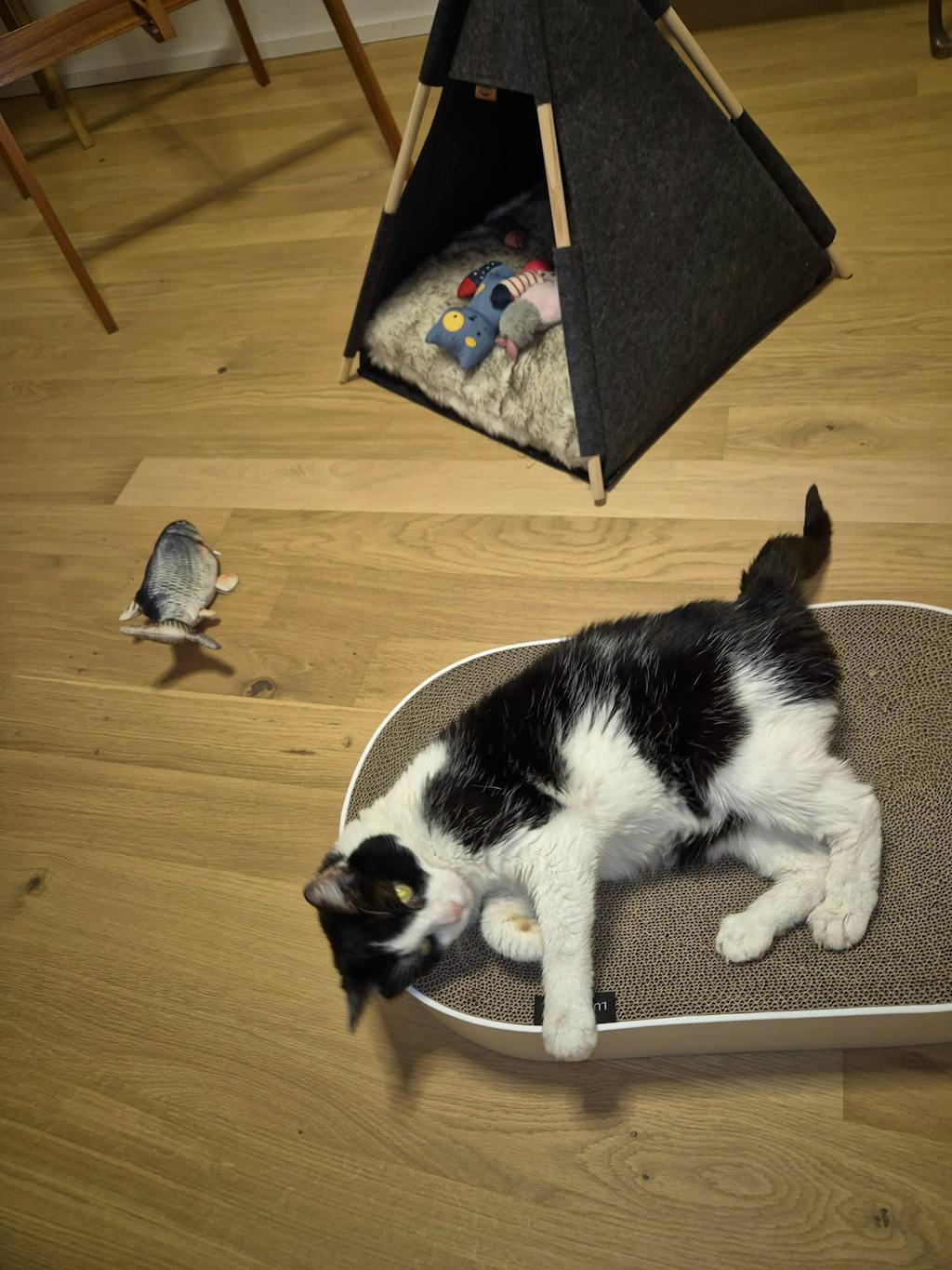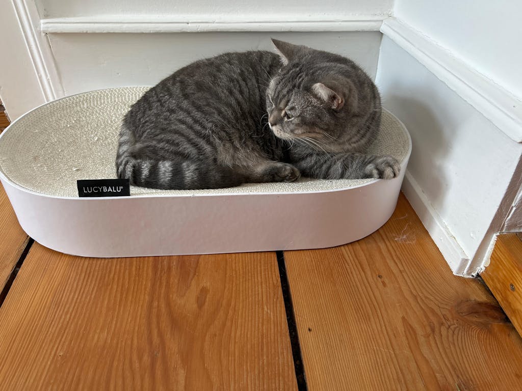 Ich mag die Optik und die Tatsche, dass nicht überall kleine Kartonteile rumliegen, wie bei den anderen Scratchpads. Meine Katzen schärfen ihre Krallen und schlafen darin.