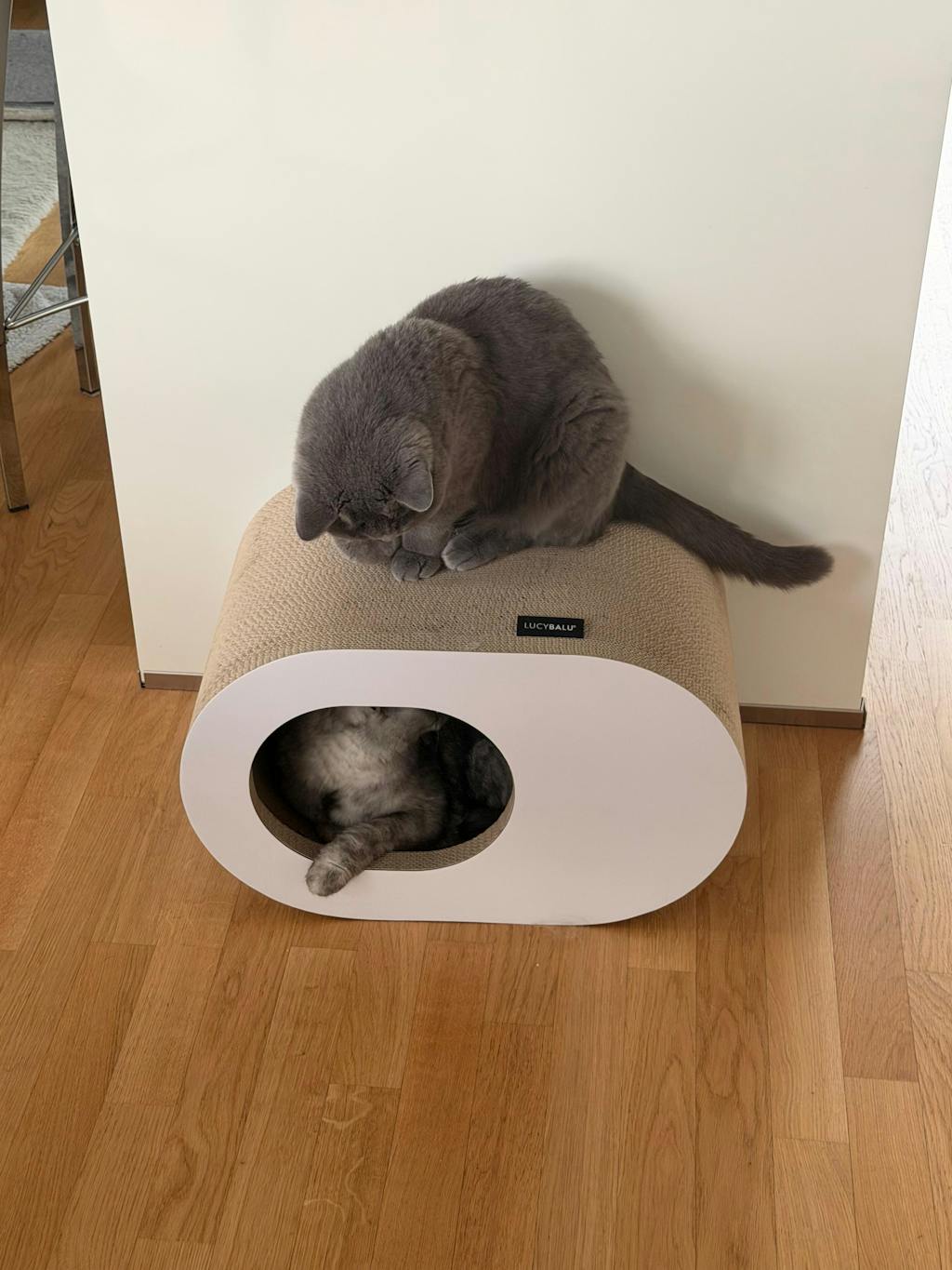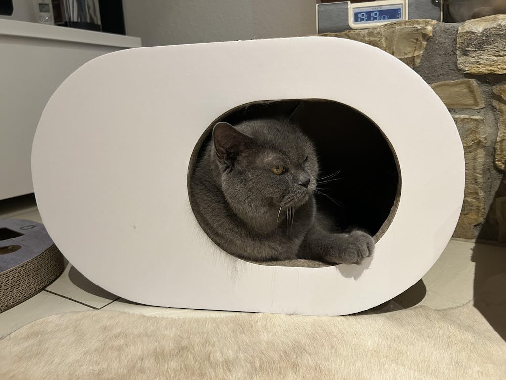 Darum lieben wir’s: Katzen verkriechen sich gerne in Höhlen. Und sie lieben Kartonagen. Wenn Katzen designen könnten, würden sie eine PAPERCAVE entwickeln.