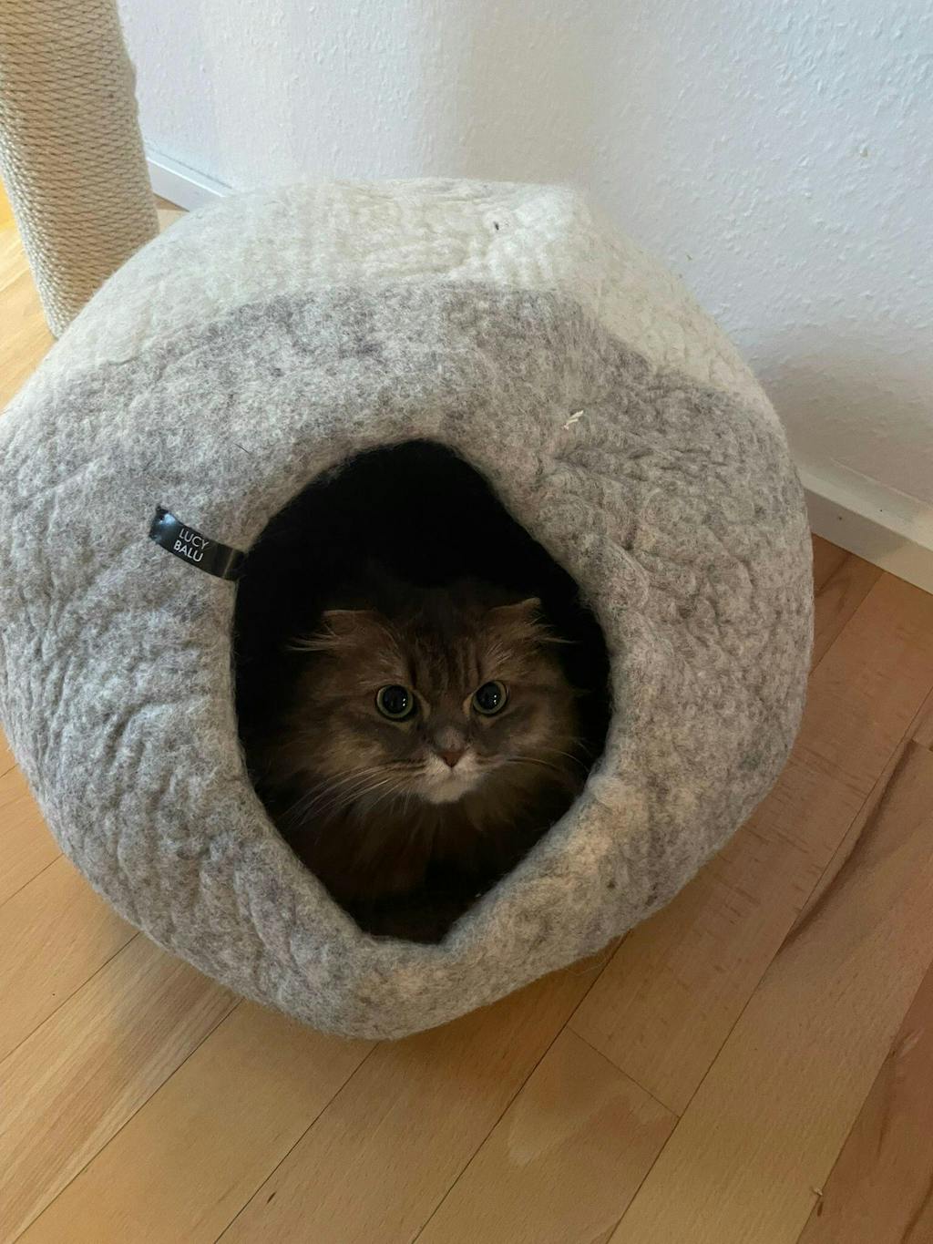 Die Katzenhöhle sowie die Filzbälle wurden sofort von der Katze angenommen. Die Höhle ist für draußen und ich habe sie noch mit einem Fellausgekleidet. Tiptop. Dazu gab’s noch einen Filzball extra, dieser mauserte sich zum lieblings Ball. Vielen Dank und gerne wieder