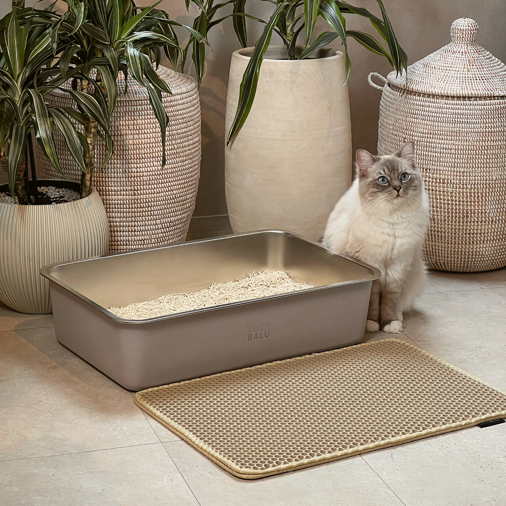 Stainless steel is highly resistant to moisture, making it ideal for use as a litter tray. Although very aggressive cat urine can occasionally cause minimal discolouration or small spots on the surface, the material remains durable and stable overall. Such marks can be removed using simple household remedies. Regular cleaning and sufficient litter help avoid residue build-up and keep the tray in top condition.