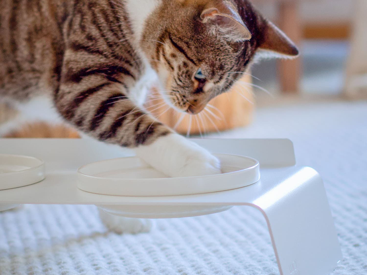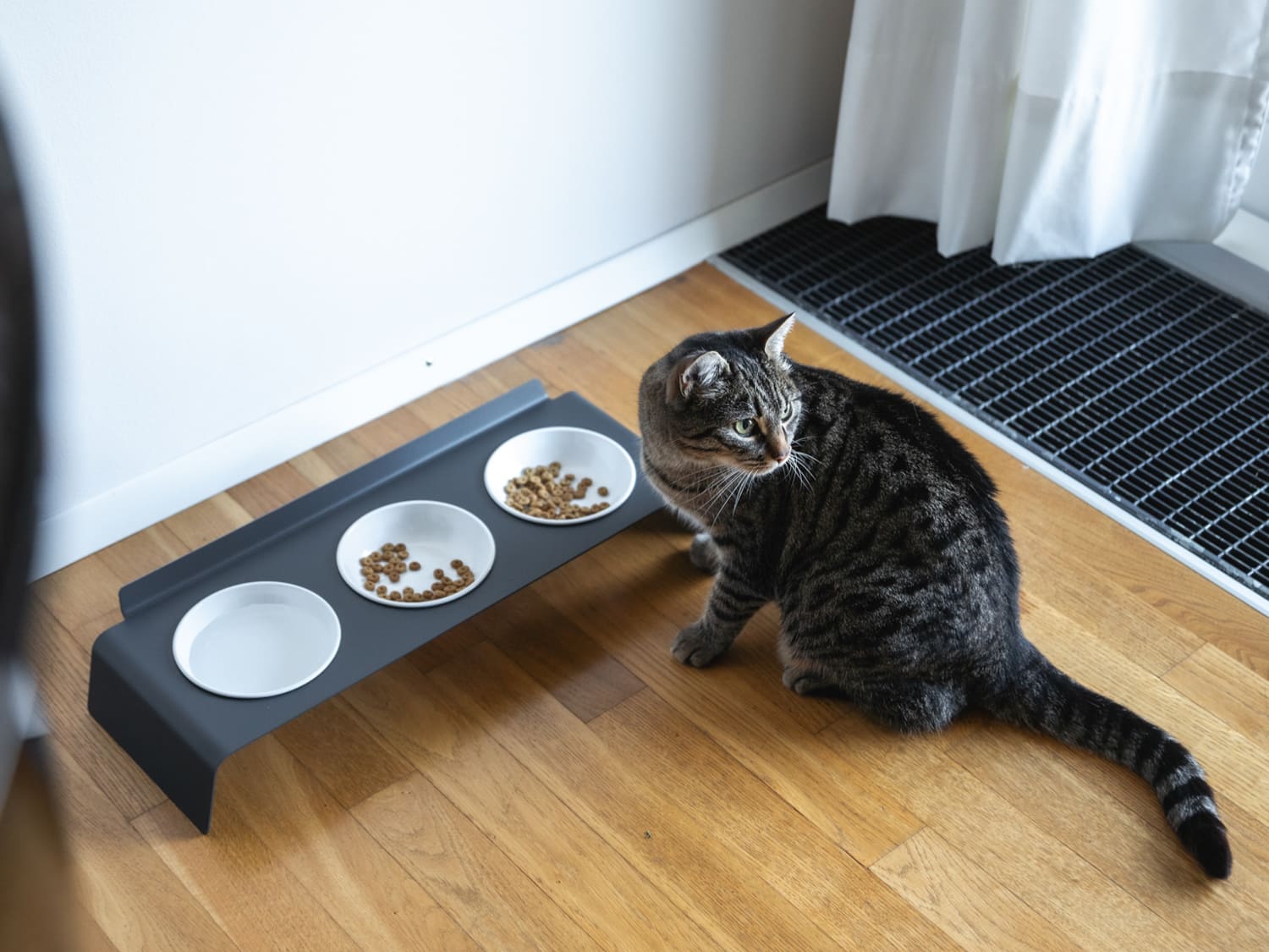 Durch die aufrechtere Haltung beim Fressen kann das Futter leichter in den Magen gelangen und vermindert das Risiko von Sodbrennen und Verschlucken. Das ist bei Katzen mit empfindlichem Magen-Darm-Trakt relevant.