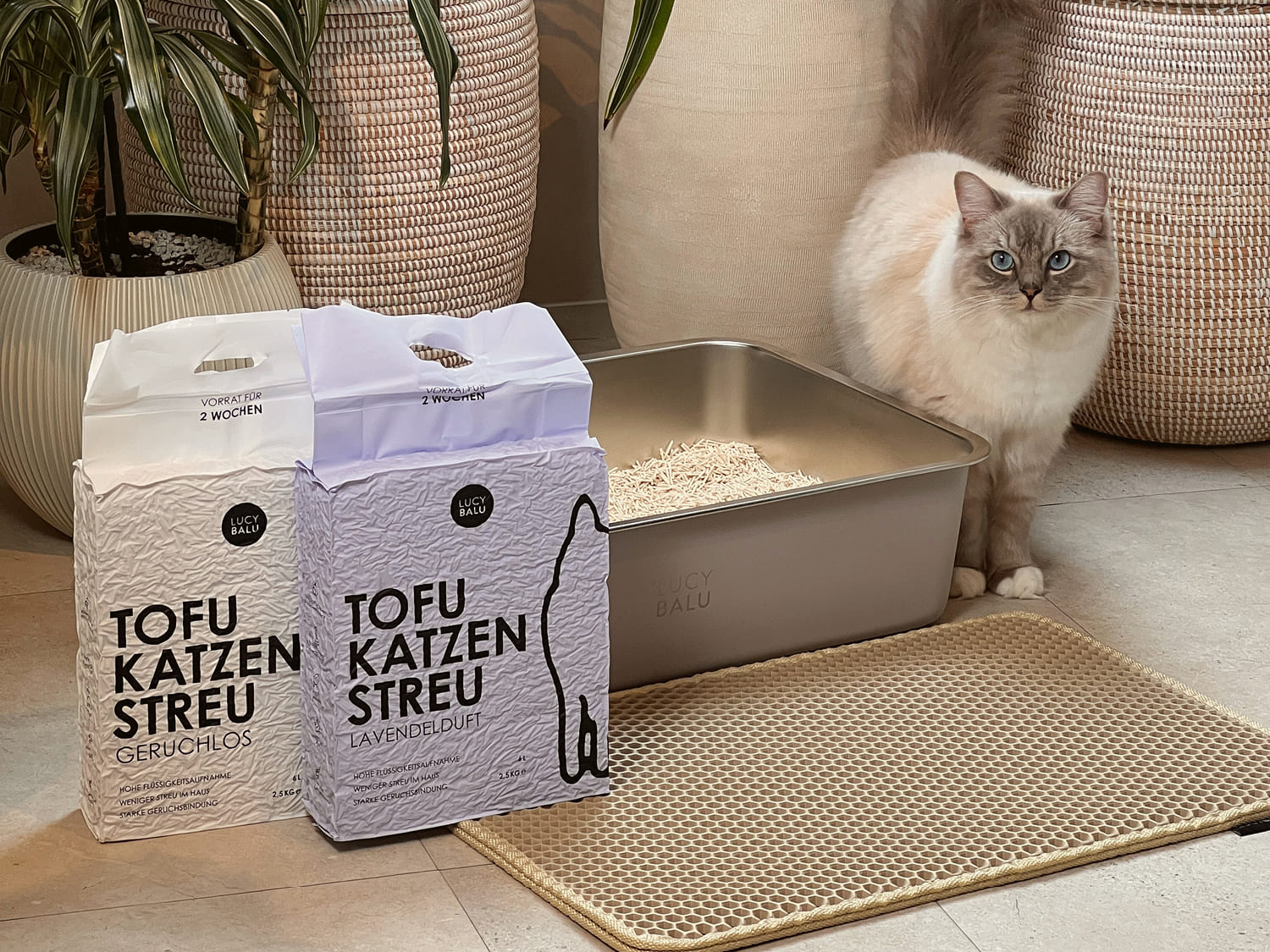 Hinzu kommt: TOFU wird effizienter genutzt. Die pflanzlichen Fasern saugen Flüssigkeit schnell auf, klumpen fest und binden Gerüche aktiv. Das bedeutet: weniger Streuverlust, weniger Nachfüllen, weniger „Ich schütte einfach mal mehr rein“-Momente.