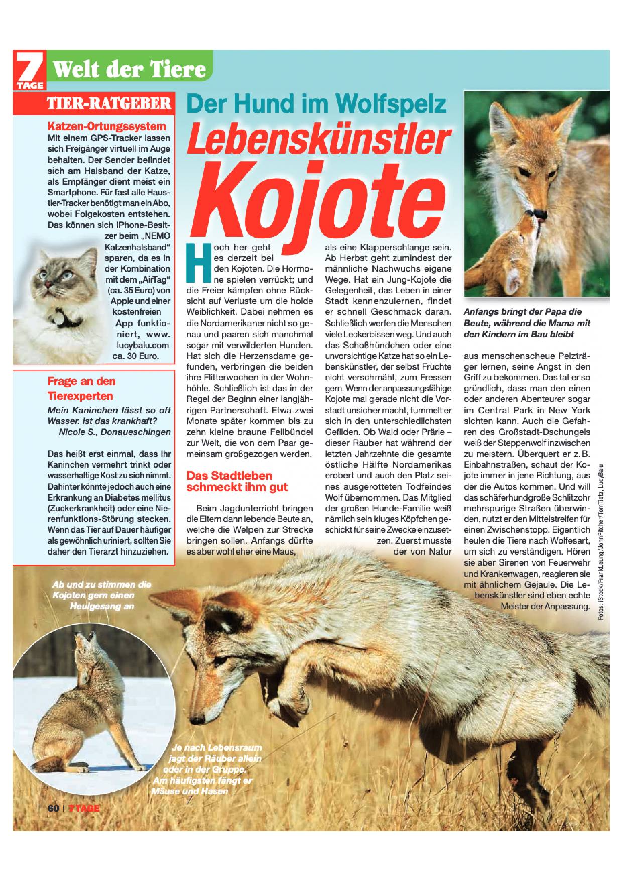 Im Januar 2022 waren wir in der "7 Tage" zu sehen. Im Heft Nr. 04 sind wir auf Seite 60 vertreten. Die Redaktion stellt im Magazin unser Katzenhalsband Nemo vor: