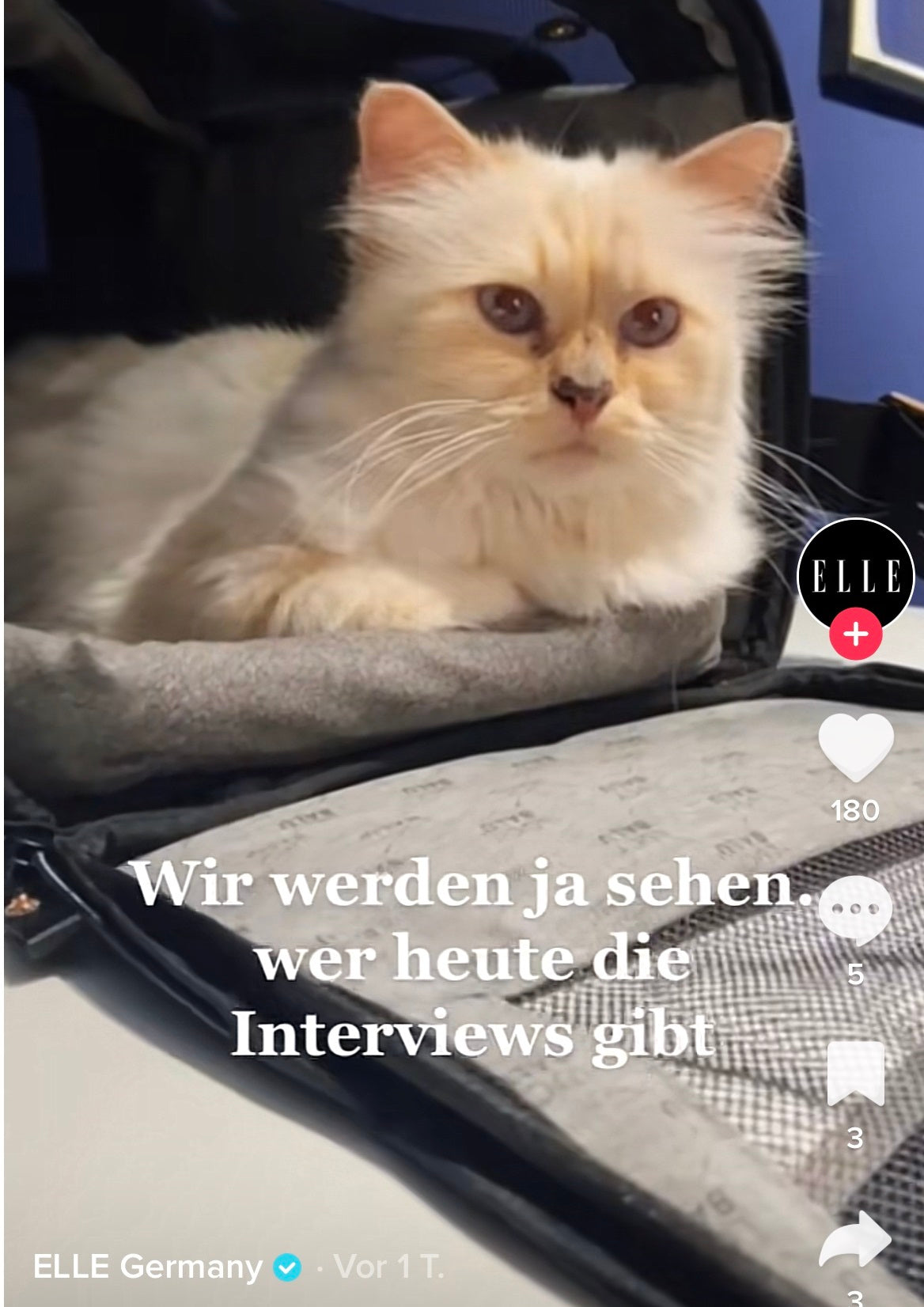 Choupette, Karl Lagerfelds Katze, hat mit uns bereits drei Kooperationen. Nun war sie auch mit uns auf der Messe "Maison & Objet 22" in Paris. Dort haben wir gemeinsam ihre neue Tasche vorgestellt, die wir zusammen designed haben - die Choupette Edition der CHECK-IN Reisetasche für Katzen. Ein kleiner Ausschnitt davon war am 15.9.2022 auf dem TikTok-Kanal von "ELLE Germany" zu sehen: Zum TikTok.