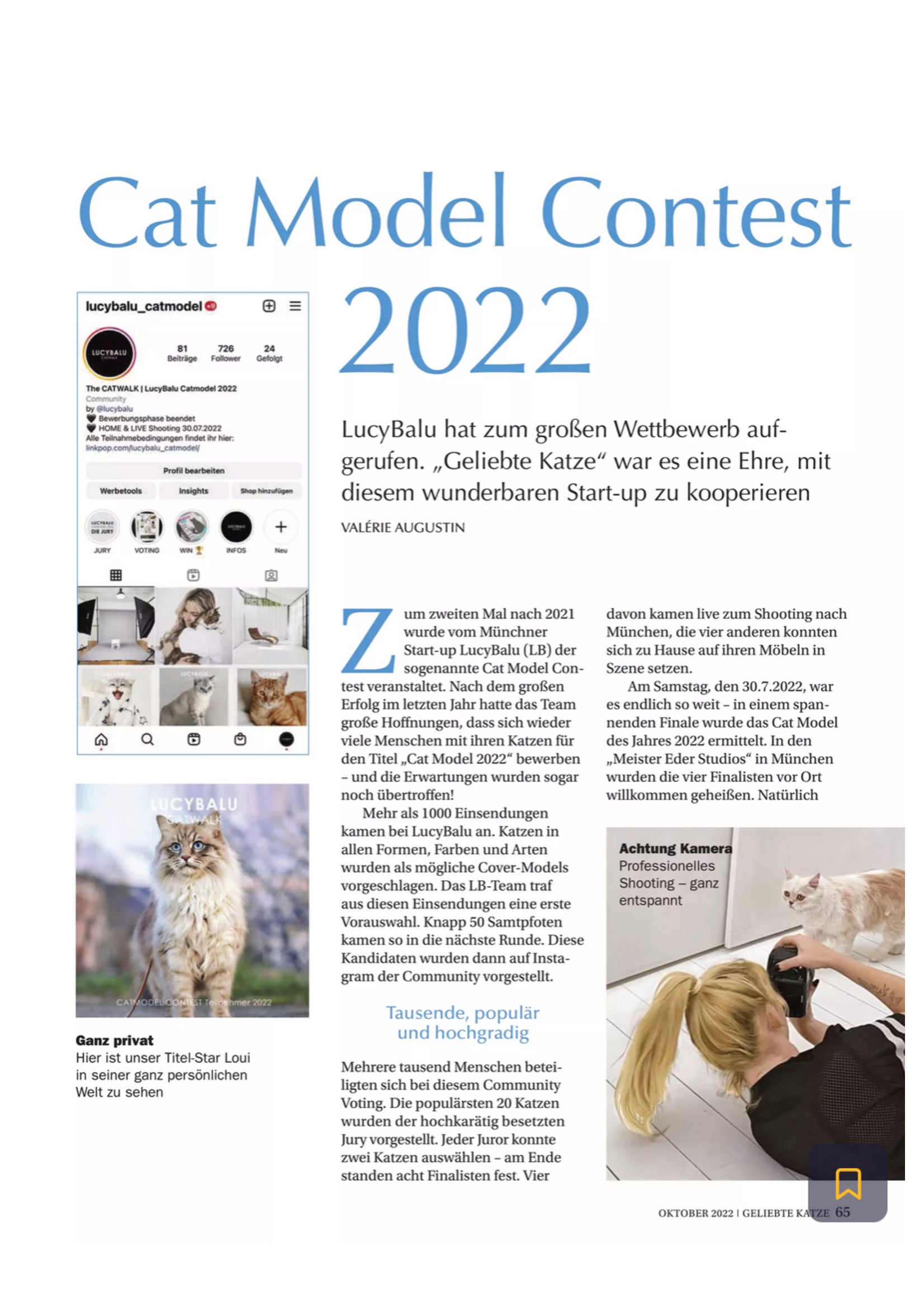 Zum zweiten Mal nach 2021 wurde von unserem Münchner Start-Up LucyBalu der sogenannte Cat Model Contest veranstaltet.