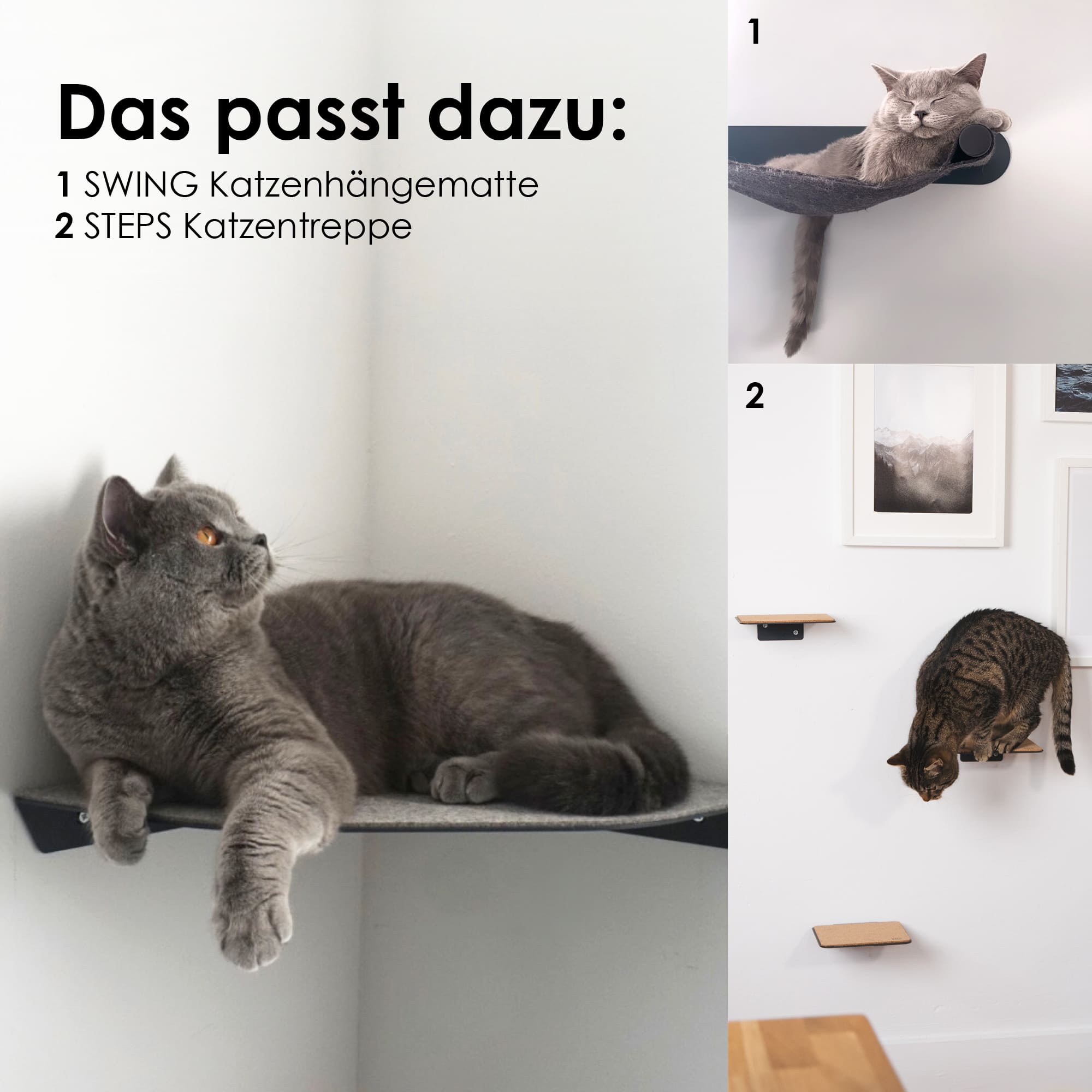• Peu encombrant et élégant. Le design minimaliste de CORNER s’intègre partout. Combine-le avec d'autres éléments muraux LucyBalu pour créer un véritable terrain de jeu pour ton chat.
