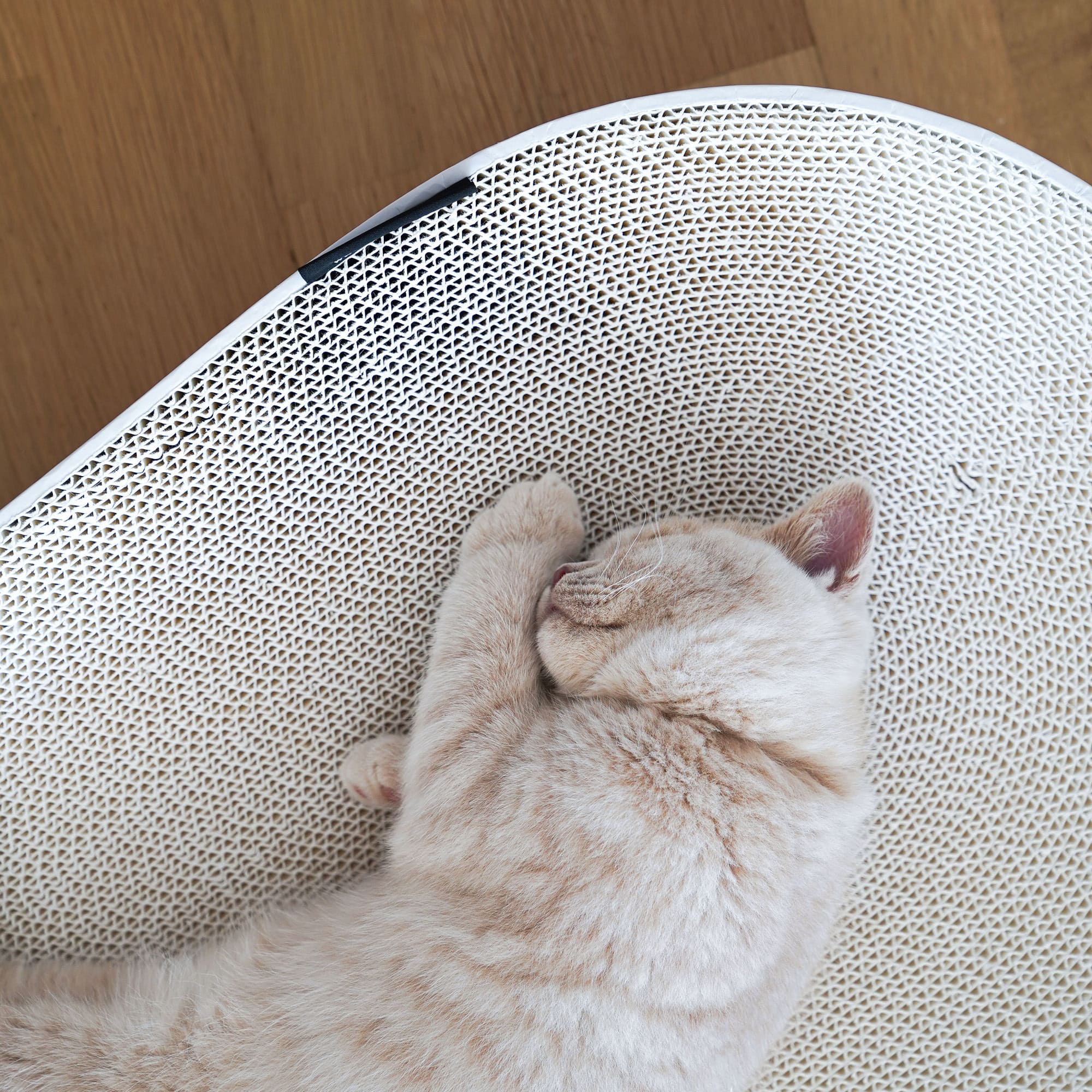 « Maman, j'ai fait mes griffes en dormant ! » Pas de panique, ton chat a désormais son propre panier en carton, conçu spécialement pour lui. Parfait pour se défouler en grattant, puis se détendre en toute tranquillité.