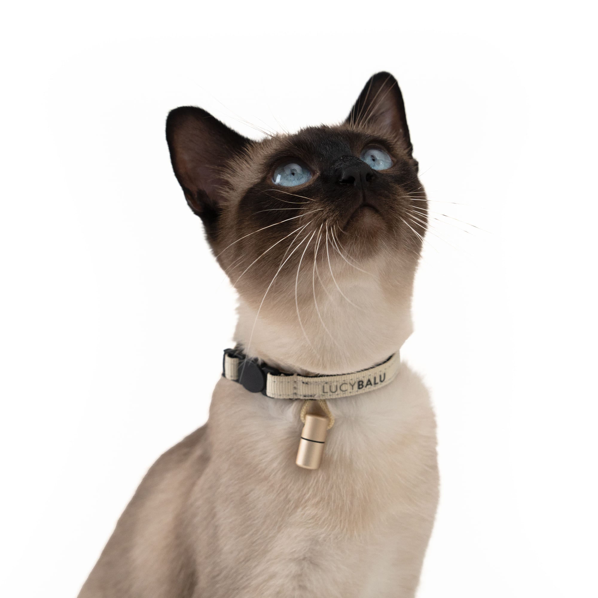 WILLY Katzenhalsband – sicher, leicht, mit Name. Dieses Katzenhalsband vereint minimalistisches Design mit cleverer Funktion. Die integrierte Aluminium-Kapsel bietet Platz für eine kleine Nachricht mit Kontaktdaten – wasserdicht und gut geschützt im Inneren verstaut. So kann deine Katze im Notfall eindeutig identifiziert werden – auch ohne auffälligen Adressanhänger. Dank selbstöffnendem Sicherheitsverschluss öffnet sich das Katzenhalsband bei Zugkräften über 2,5 kg automatisch – das schützt vor Verletzungen und gibt ein gutes Gefühl im Alltag. Das robuste, reißfeste Nylonband ist stufenlos verstellbar (18–26 cm) und ideal für ausgewachsene Katzen ab 3 kg. WILLY ist das Katzenhalsband für alle, die Sicherheit und Stil suchen – mit Namen, mit Nachricht, mit Sinn.
