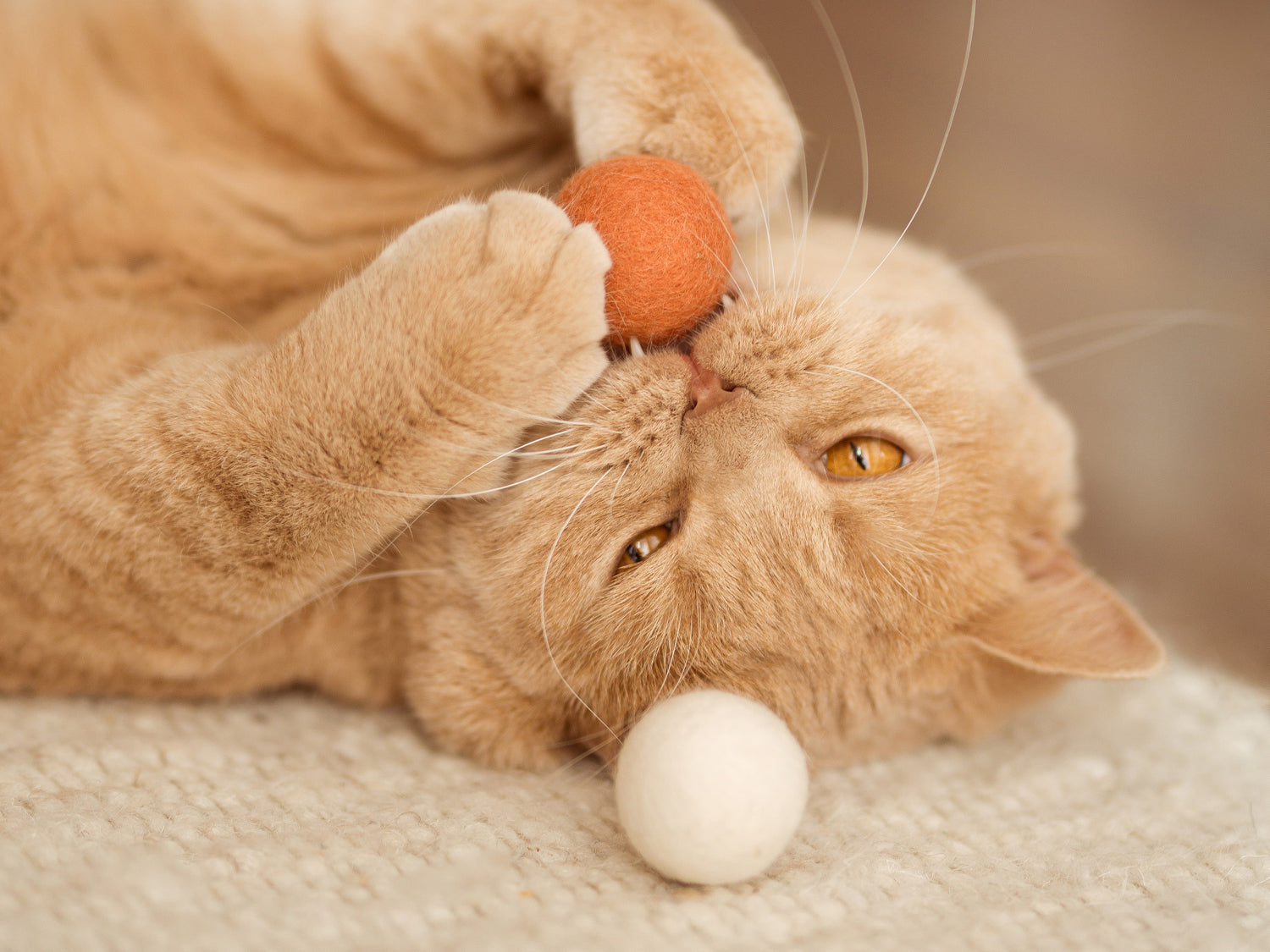 Ablenkung kann Wunder wirken: Spielzeug, Matatabi Sticks, Katzenminze oder eine neue Kratzmöglichkeit bieten deiner Katze sinnvolle Beschäftigung und können helfen vom Trubel abzulenken.