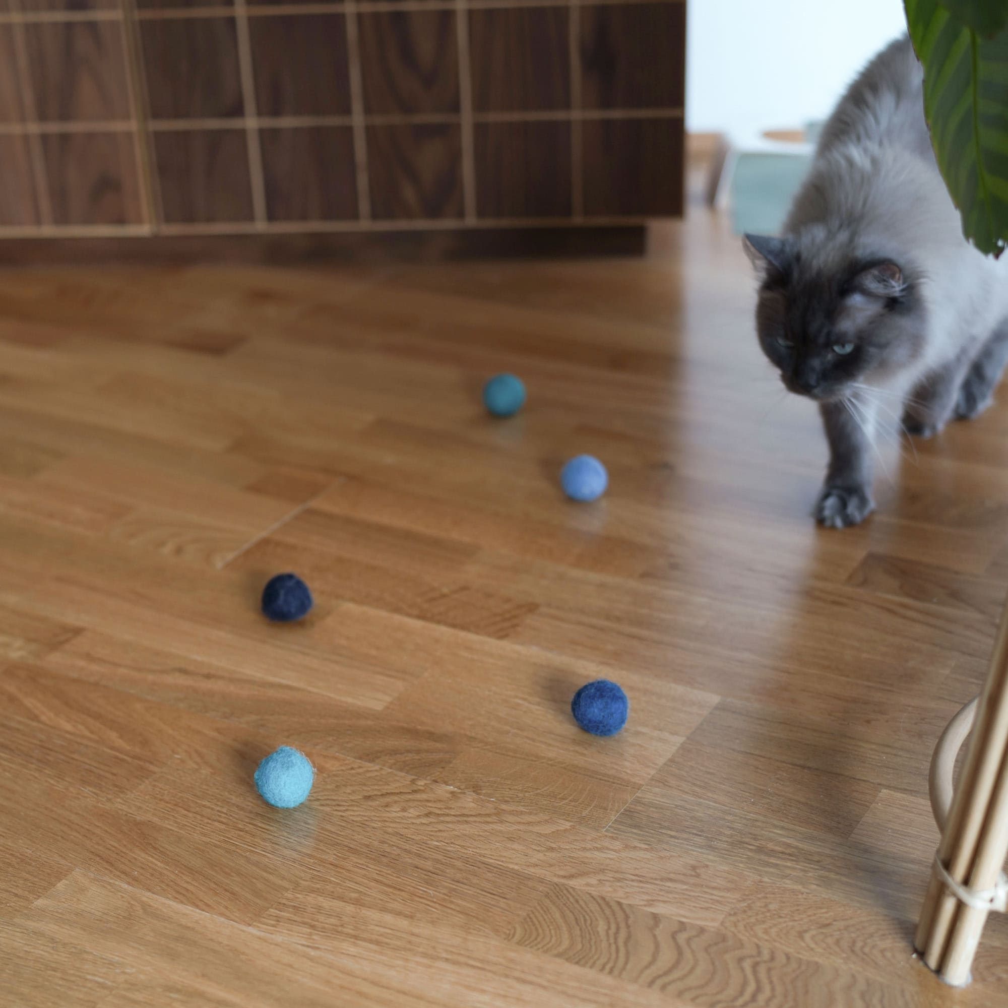 Braucht deine Katze Urlaub? Mag sein. Mit den OCEAN VIBES bringst du Urlaubsstimmung nach Hause. Katzen nehmen vor allem Blautöne wahr. Perfekt also, dass unsere Filzbällchen in sanften Blauabstufungen daherkommen – wie das Meer, das in der Sonne glitzert.