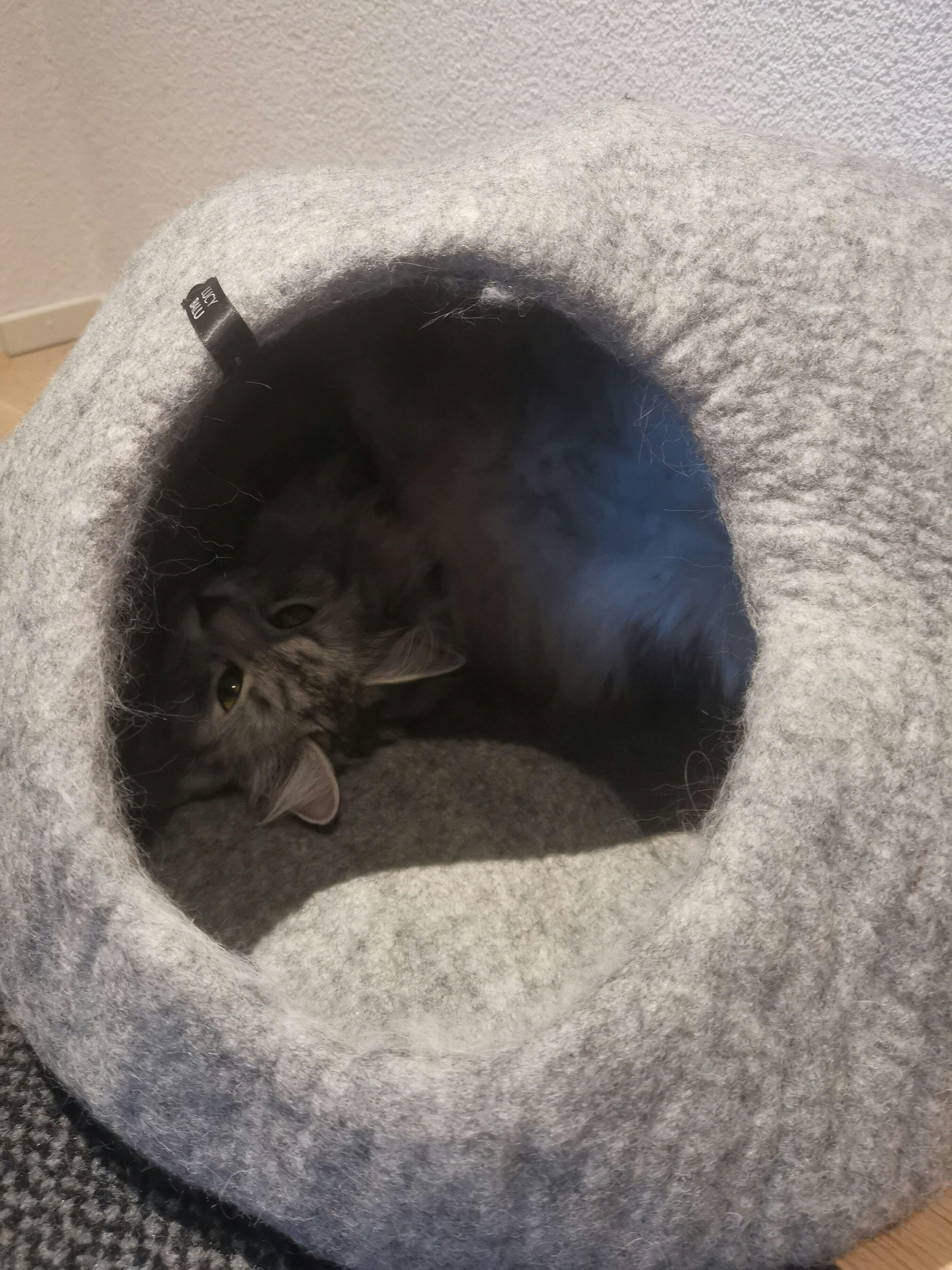 Die PEBBLE Filzhöhle bietet deiner Katze einen kuschlig weichen Rückzugsort. In der natürlichen Höhle aus Wollfilz fühlen sich Katzen wohl und geborgen. Dabei ist das Material besonders hygienisch, denn Wollfilz besitzt einen selbstreinigenden Effekt und ist geruchsneutral. Zudem besitzt es antistatische Eigenschaften und nimmt die Körpertemperatur an. Während die Filzhöhle im Winter Wärme und Behaglichkeit ausstrahlt, ist sie im Sommer angenehm kühl.