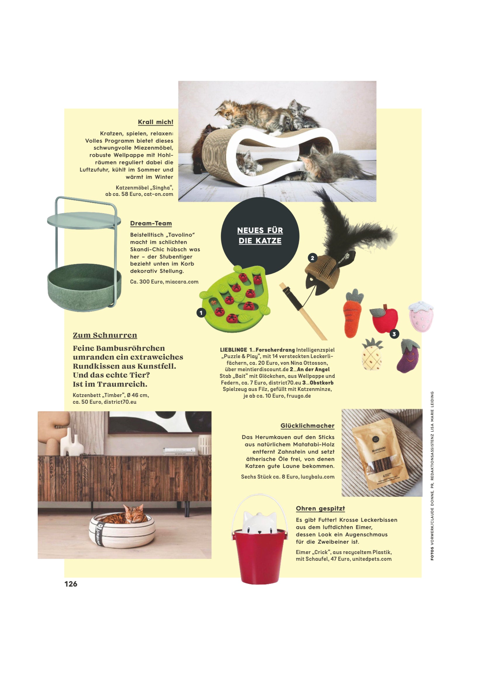 Wir freuen uns, dass wir im Juni 2023 in der 14. Ausgabe der "Brigitte" abgebildet waren. Christina Poppe schreibt hier über LucyBalus Matatabi-Sticks.