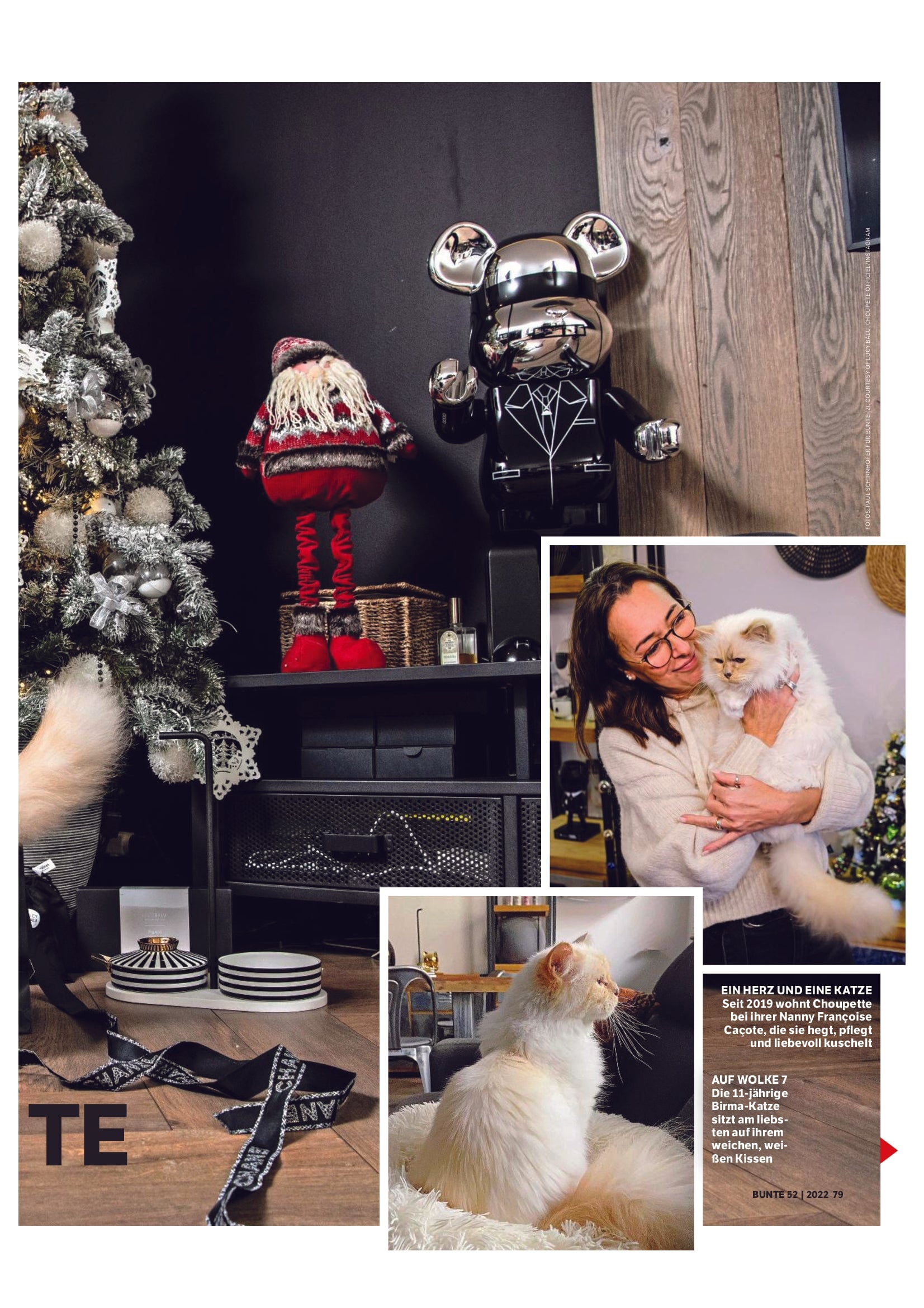 Wir freuen uns, dass unsere Kooperation mit Karl Lagerfelds Katze Choupette in der Weihnachtsausgabe, Dezember 2022, in der "BUNTE" vorgestellt worden ist. Auf Seite 79 und 81 sind sowohl die Futterbar "GARÇON s.v.p.", als auch die Reisetasche "CHECK-IN" aus unserer Kooperation mit Choupette zu sehen.