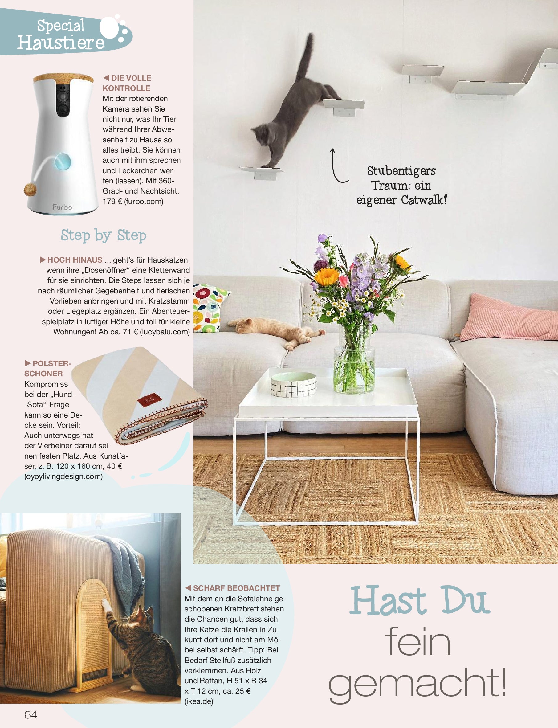 Wir freuen uns, dass wir in der September Ausgabe 2024 der "Lisa Wohnen&Dekorieren" zu sehen waren. In der Sommerausgabe stellt die Redaktion im "Special: Haustiere" Accessoires vor, mit denen sich Tier und Mensch daheim wohl fühlen können.