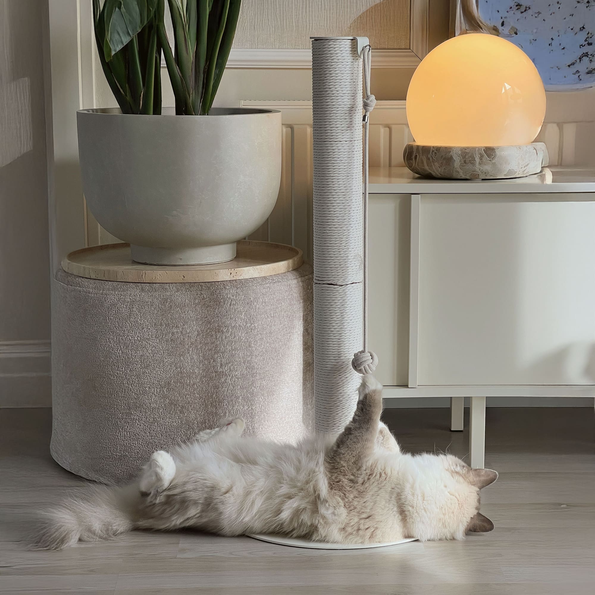 Nice and stable. Love the height, our cat can fully stretch while scratching. The main reason we bought this was that the scratch parts are sold separately, so we don’t have to buy an entire new pole every time. 🌱