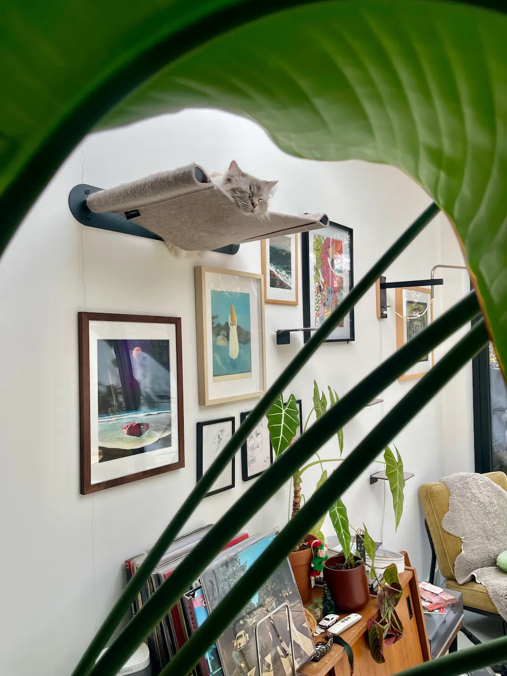 This is the very best spot in our home. I love being up there and watching my kingdom and the trains outside. It's also great to hide here from the robot vacuum. Mom likes it, too, as the color blends well in our home, and the perfect design is perfect. She is also happy she finally bought something I like for real. 😻 - Leopold