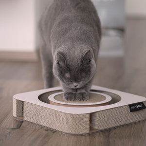 Im Zentrum wartet eine kleine Kratzfläche aus robuster Wellpappe – perfekt für die tägliche Krallenpflege. Und das Beste: Mit seinen kompakten Maßen (31 × 31 × 6,5 cm) passt das PLAYBOOK ins Regal, auf die Fensterbank oder auf den Couchtisch – und sieht dabei aus wie ein echtes Designobjekt. Ganz ohne Kompromisse zwischen Stil und Funktion. So bringst du Spielspaß in den Alltag deiner Katze – und Eleganz in dein Zuhause.