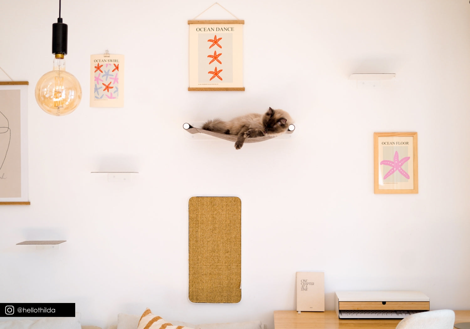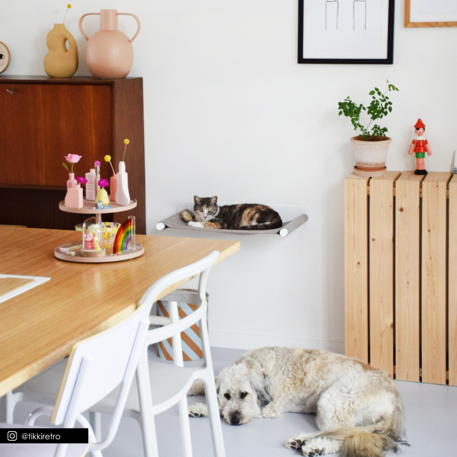 Designer Katzenhängematte für Katzen zur Wandbefestigung.