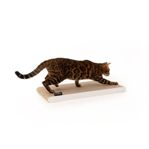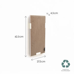 WALLPAPER ist als wandmontiertes Kratzmöbel zur Krallenpflege deiner Katze gedacht. Das Kratzbrett aus Pappe wird einfach in eine an der Wand montierte Metallhalterung geschoben. Die Wellpappe animiert zum kratzen und ist dabei erstaunlich robust.